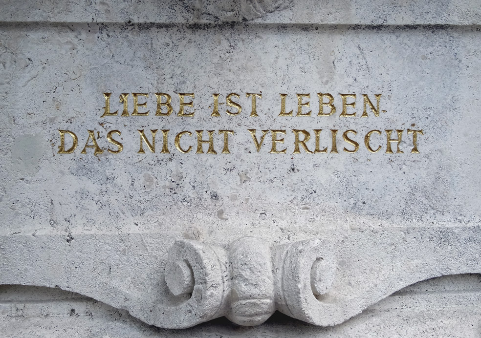 Liebe ist Leben, das nicht verlischt Grabinschrift Familie Hintermayer, Lily Pohl Wien, Friedhof Hietzing Gruppe 34, Nummer 18 Home