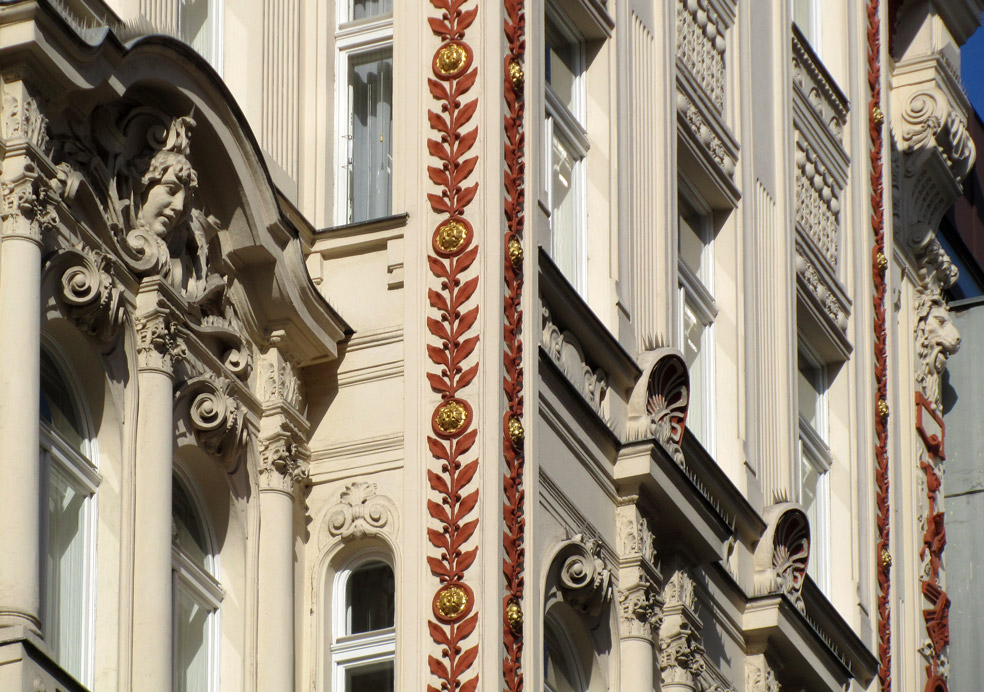 Neobarock-secessionistische Säulen und Ädikulagliederung