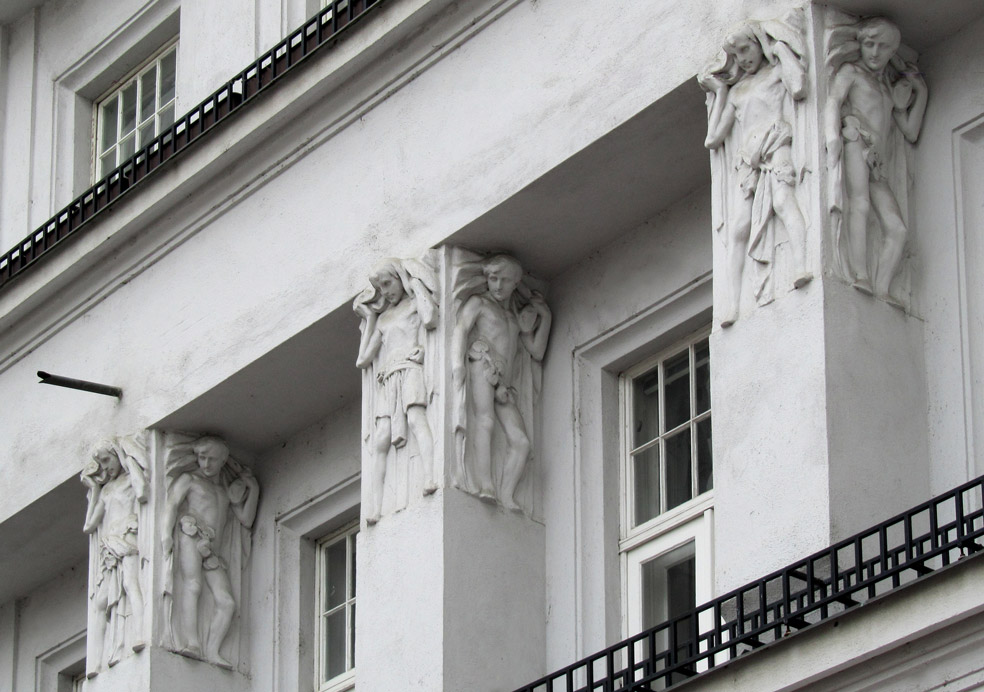 Wien 3., Rudolf-von-Alt-Platz 4 Miethaus Fünfgeschoßig Dekor mit Girlanden und figürlichen Reliefs, Knaben und Pelikane Erbaut: 1910 Architekten: Anton Drexler | Architektenlexikon Josef Drexler | Architektenlexikon Home
